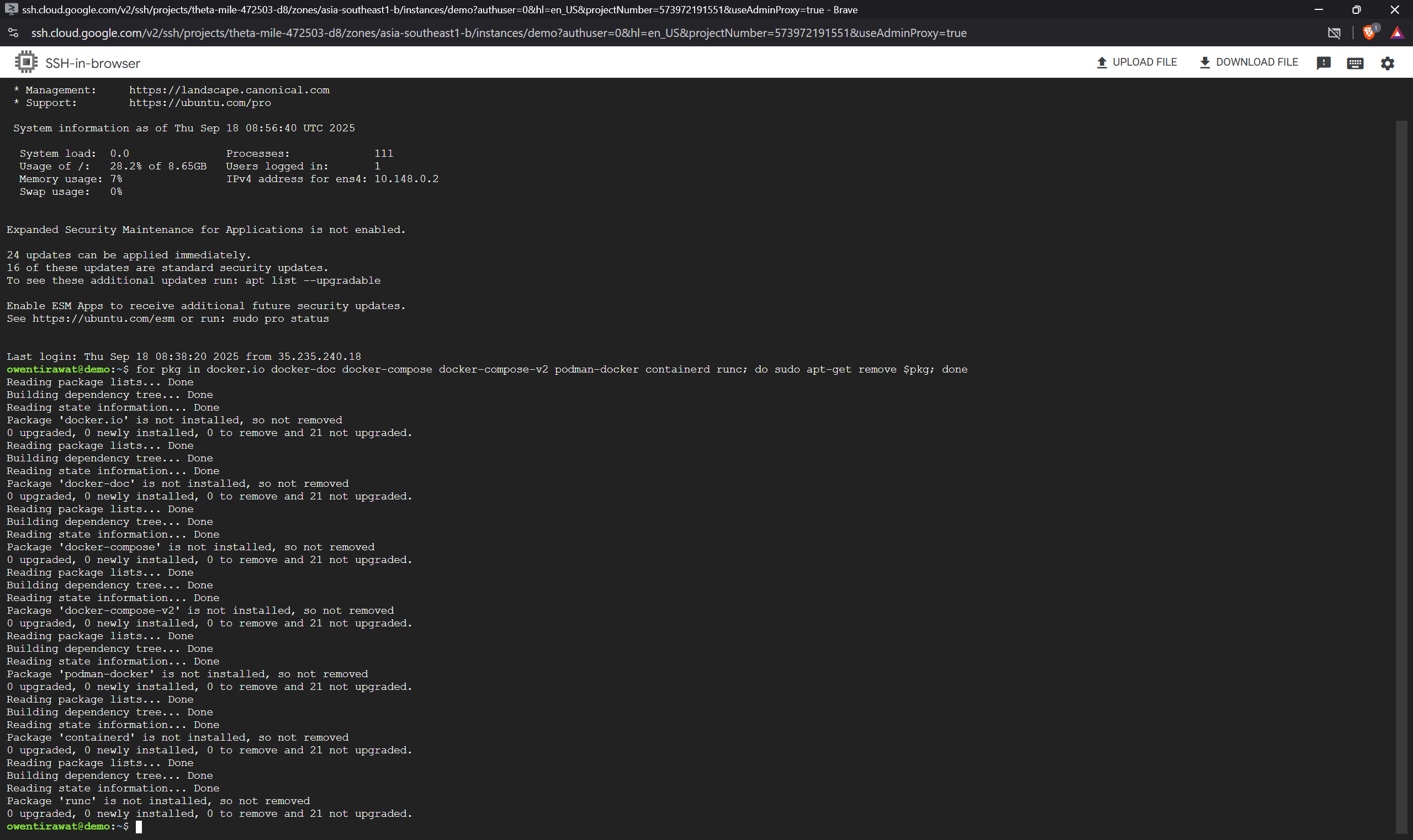 หลังจากที่เราเปิด SSH ให้ run 3 คำสั่งนี้เพื่อติดตั้ง Docker
