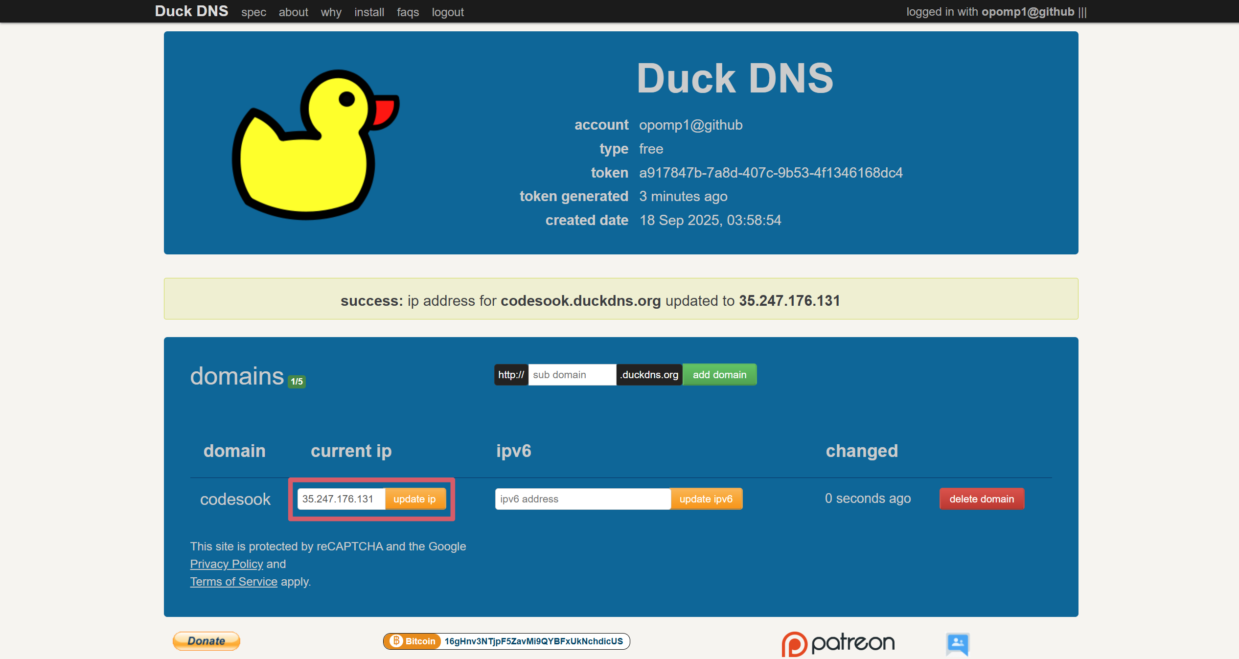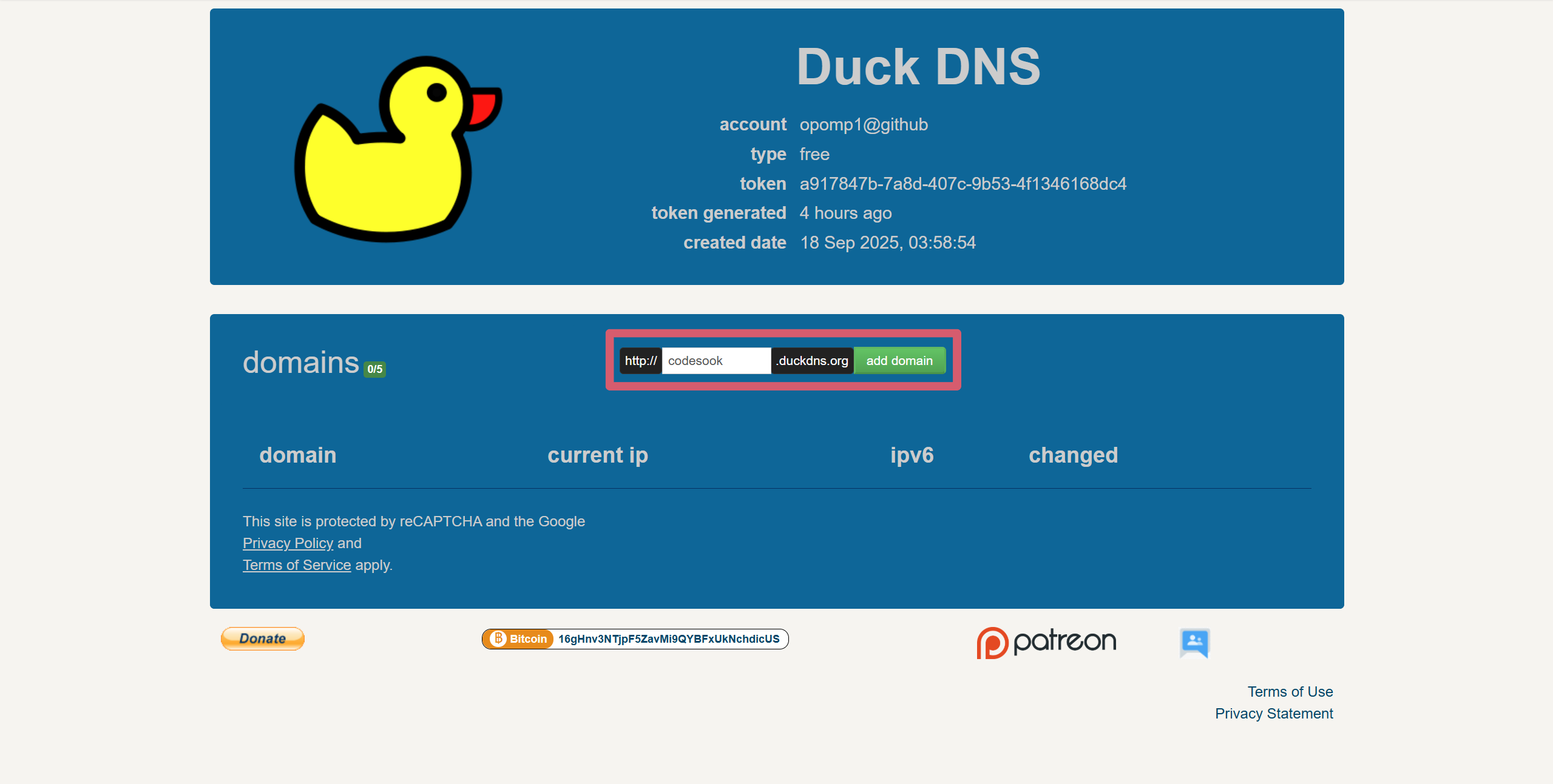 เราจะมา set up domain ให้กับเครื่อง VM ที่เราพึ่งสร้างกัน ใน tutorial นี้ ผมจะใช้เป็น Duck DNS เพราะมันฟรีและใช้งานง่าย หลังจากเข้าไปในเว็บไซต์ของ Duck DNS เราต้อง login ก่อนจึงจะใช้งานได้