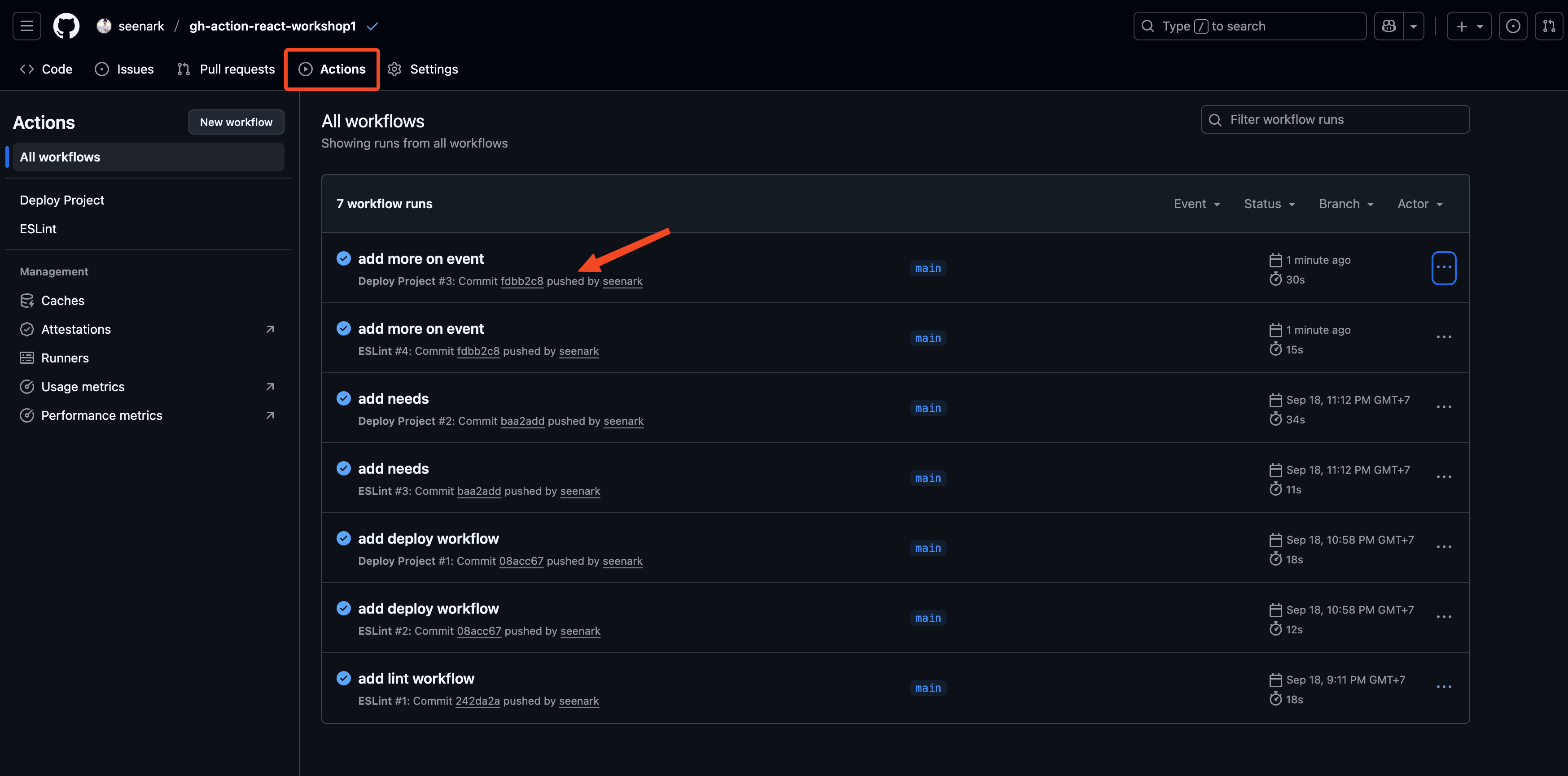 จาก Workshop ที่ได้ทำไปก่อนหน้า workflow ของเราจะทำงานก็ตอนที่เรา push code เท่านั้น
