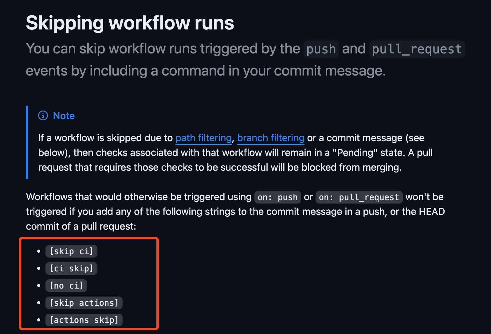 git commit -m "docs: update README.md [skip ci]"git commit -m "docs: fix typo in documentation [ci skip]"