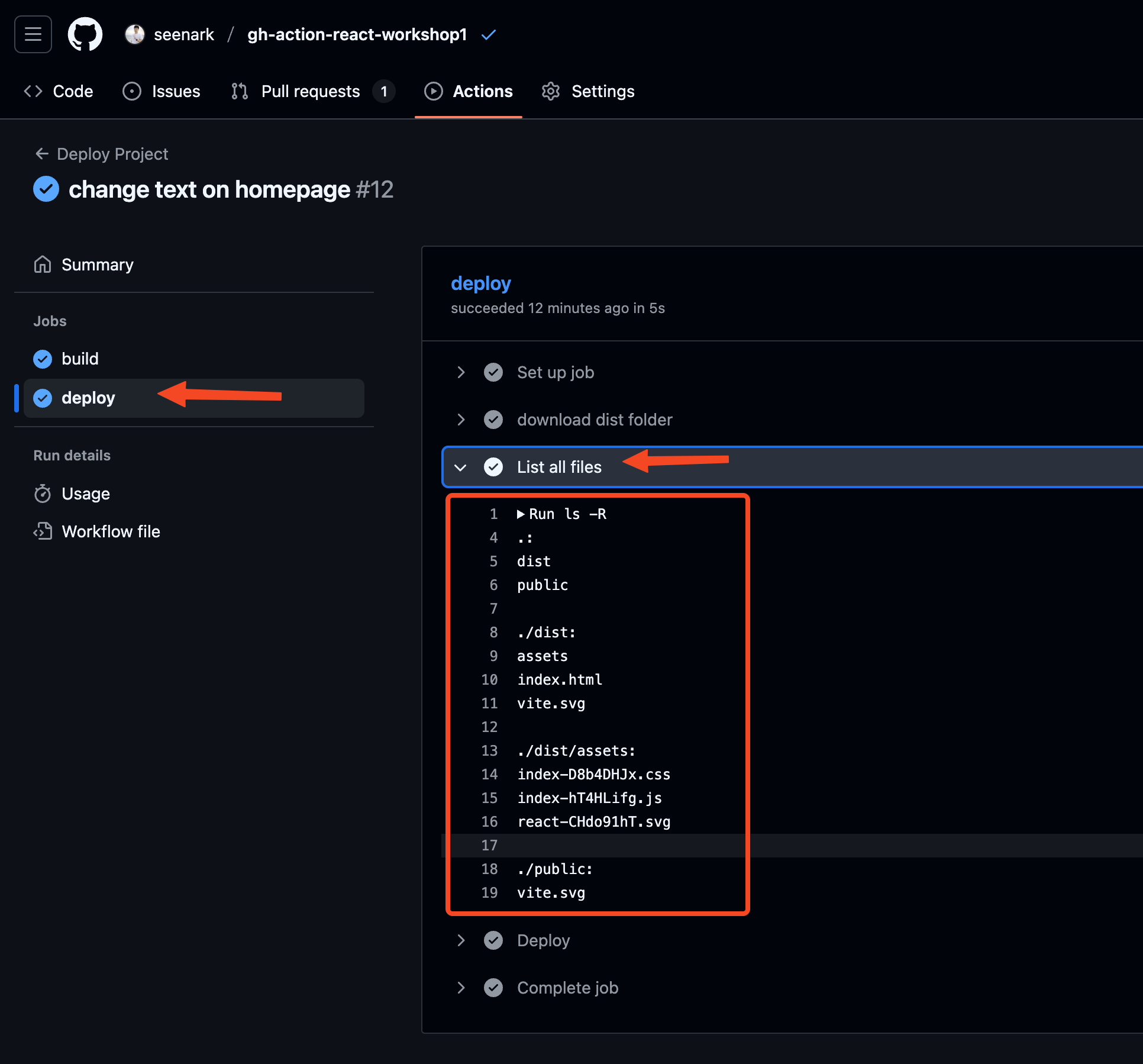 deploy: needs: - build runs-on: ubuntu-latest steps: - name: download dist folder uses: actions/download-artifact@v4 with: name: dist-folder - name: List all files run: ls -R - name: Deploy run: echo "Deploying..."