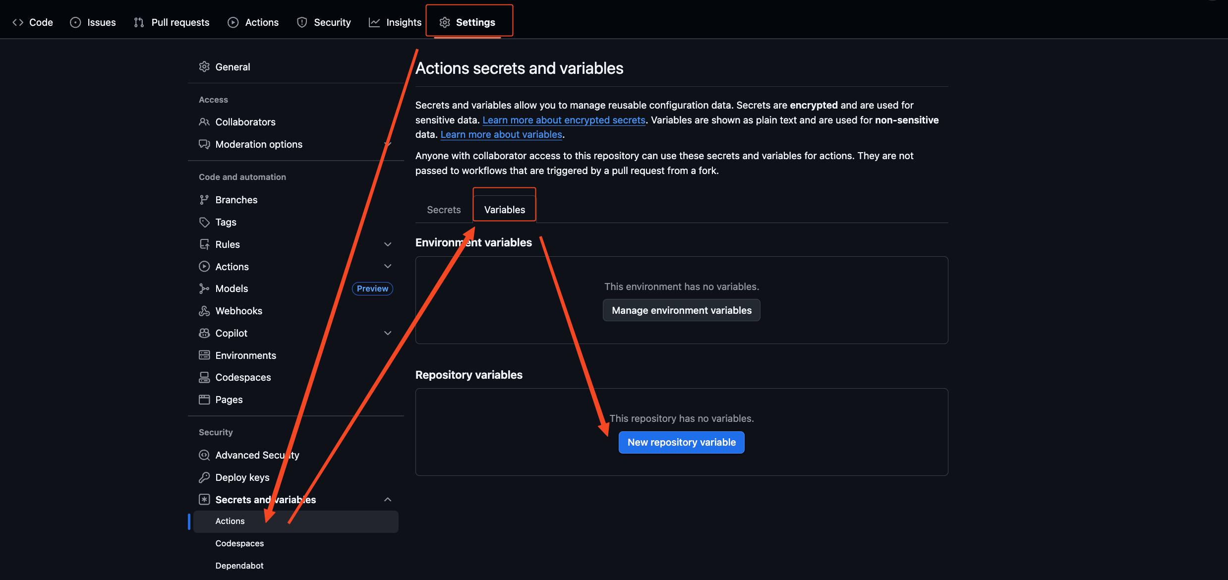 Repository | Variables Repository | ❌ | ${{ vars.NAME }} |