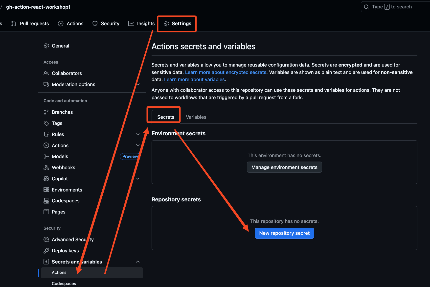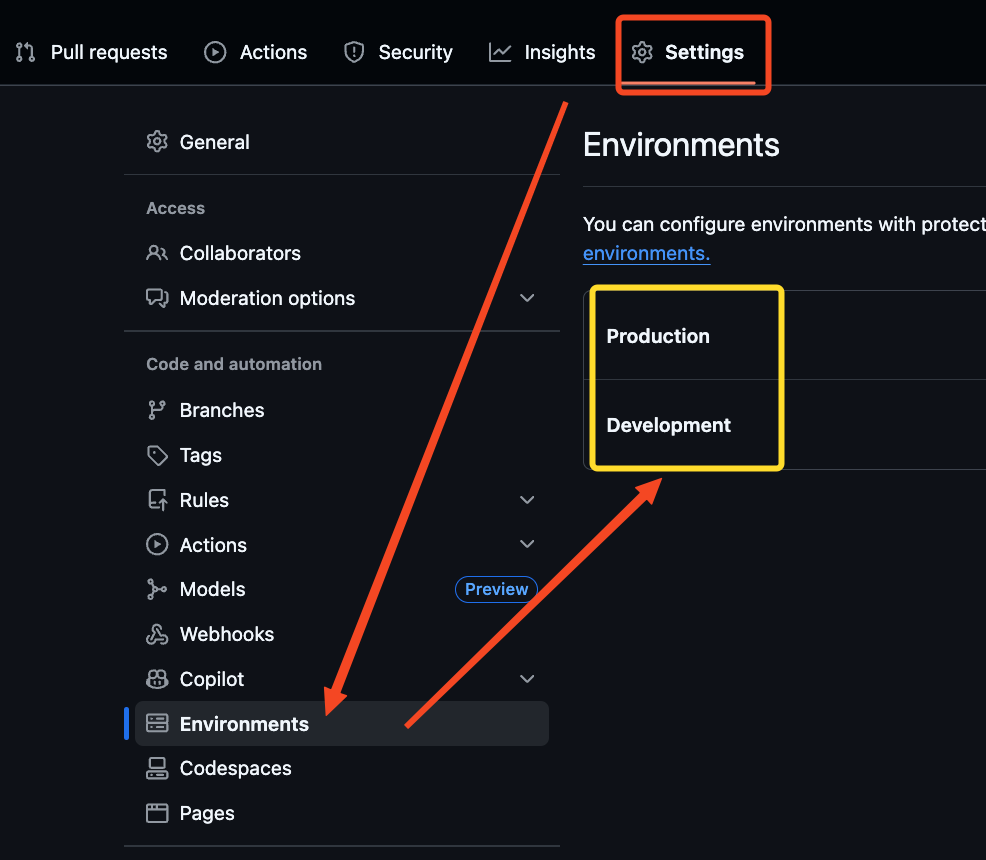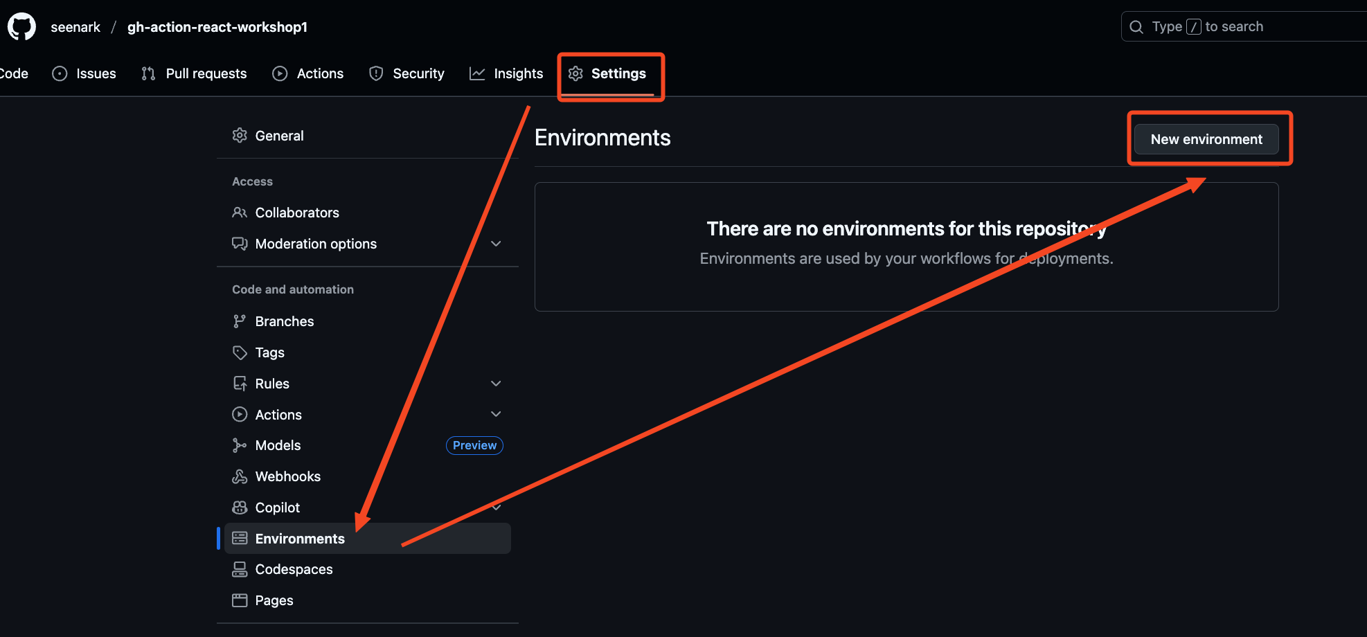 ก่อนจะใช้ Environment Variables and Secrets ได้ เราจะต้องสร้าง Environment ขึ้นมาก่อน