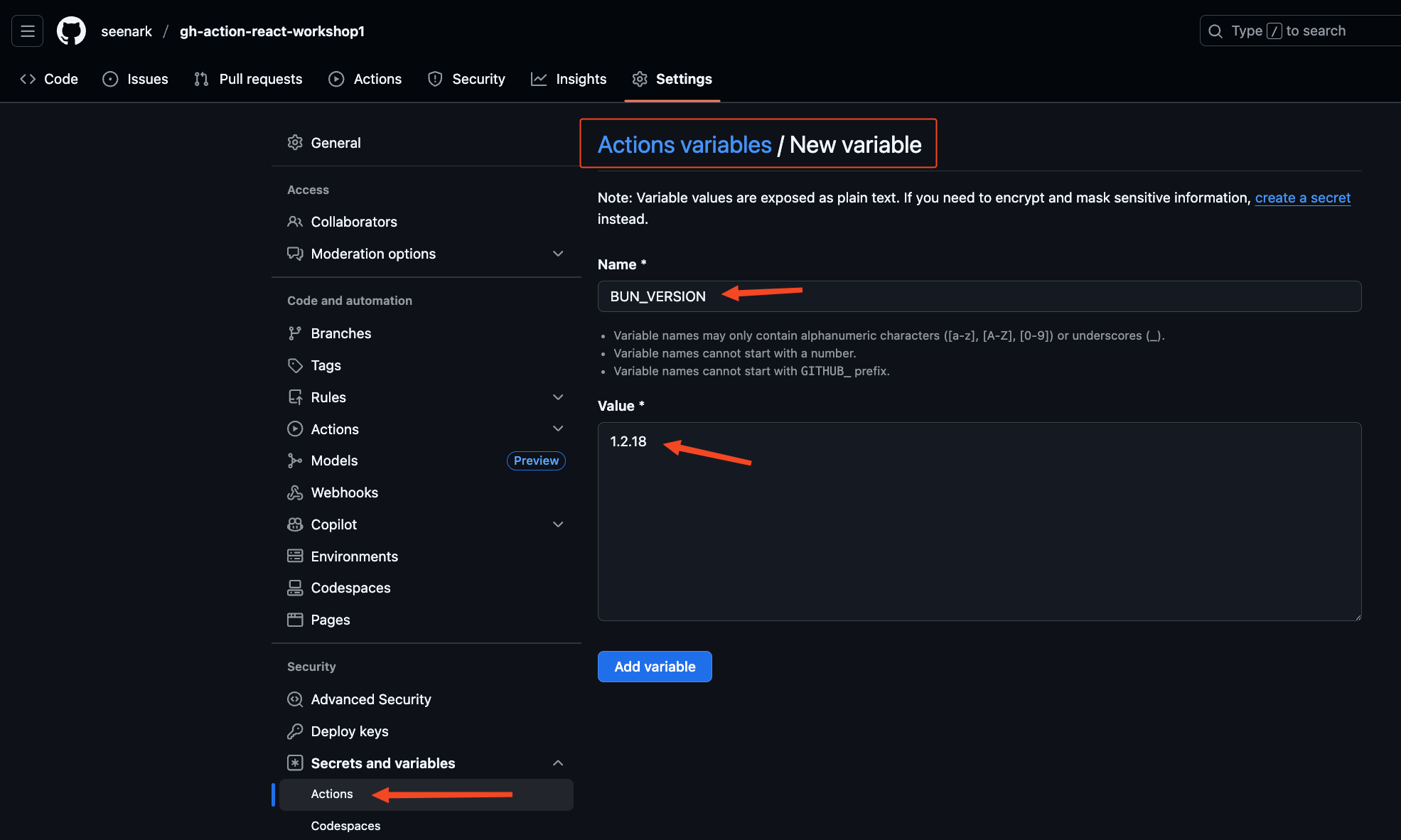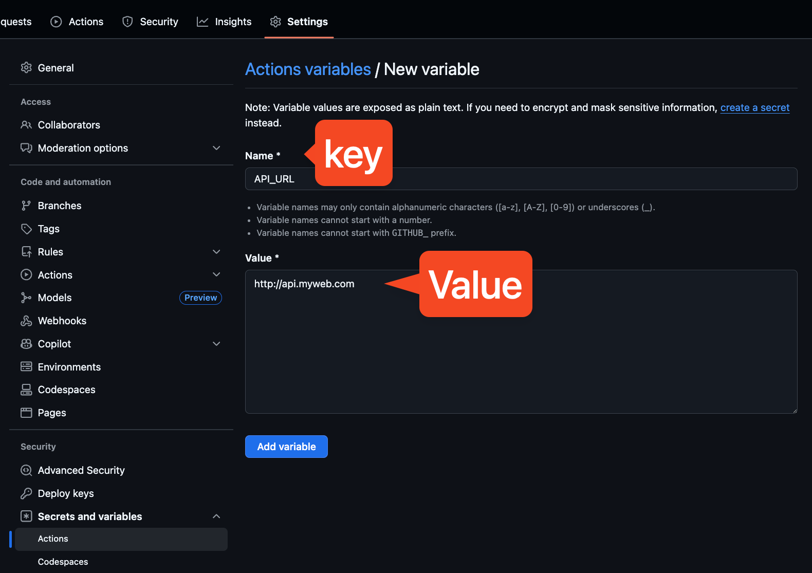 ตัวแปรที่เก็บไว้ใน repository settings (ไม่เป็นความลับ) เราต้องไป set ใน Github repository นะ