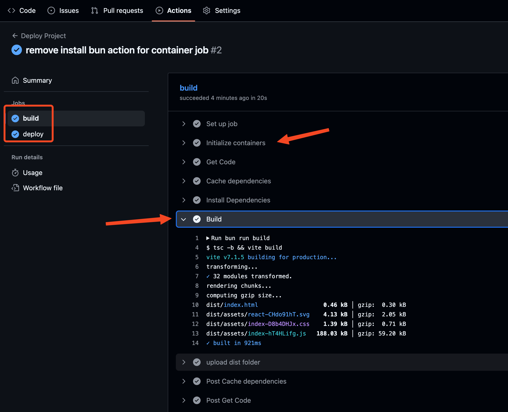 jobs: build: runs-on: ubuntu-latest container: image: oven/bun:1 env: NODE_ENV: production