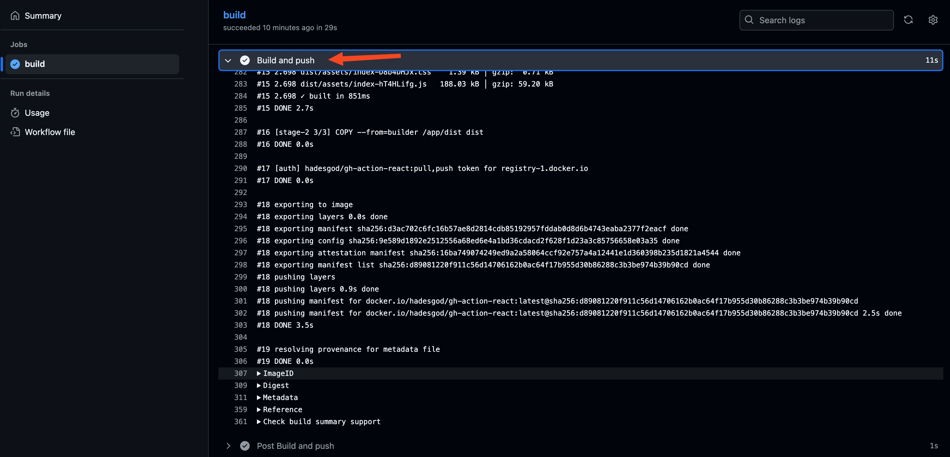 steps: - name: Get Code uses: actions/checkout@v4 - name: Login to Docker Hub uses: docker/login-action@v3 with: username: ${{ vars.DOCKERHUB_USERNAME }} password: ${{ secrets.DOCKERHUB_TOKEN }} - name: Set up QEMU uses: docker/setup-qemu-action@v3 - name: Set up Docker Buildx uses: docker/setup-buildx-action@v3 - name: Build and push uses: docker/build-push-action@v6 with: context: . push: true tags: ${{ env.USERNAME }}/gh-action-react:latest